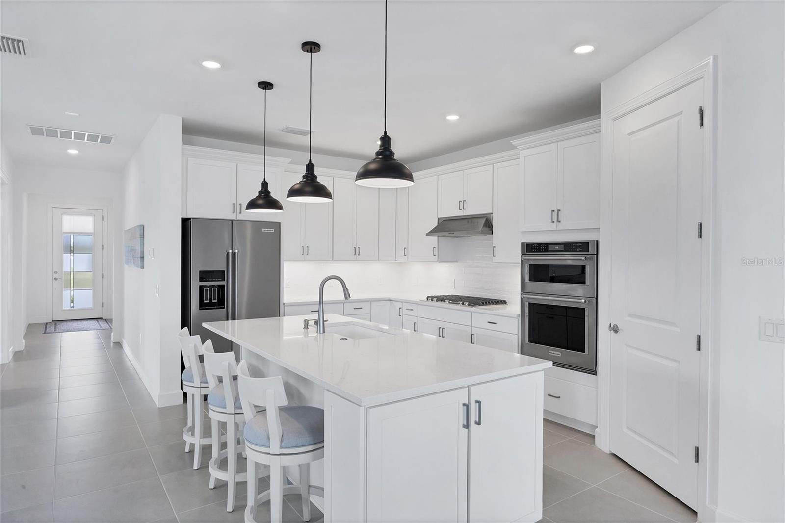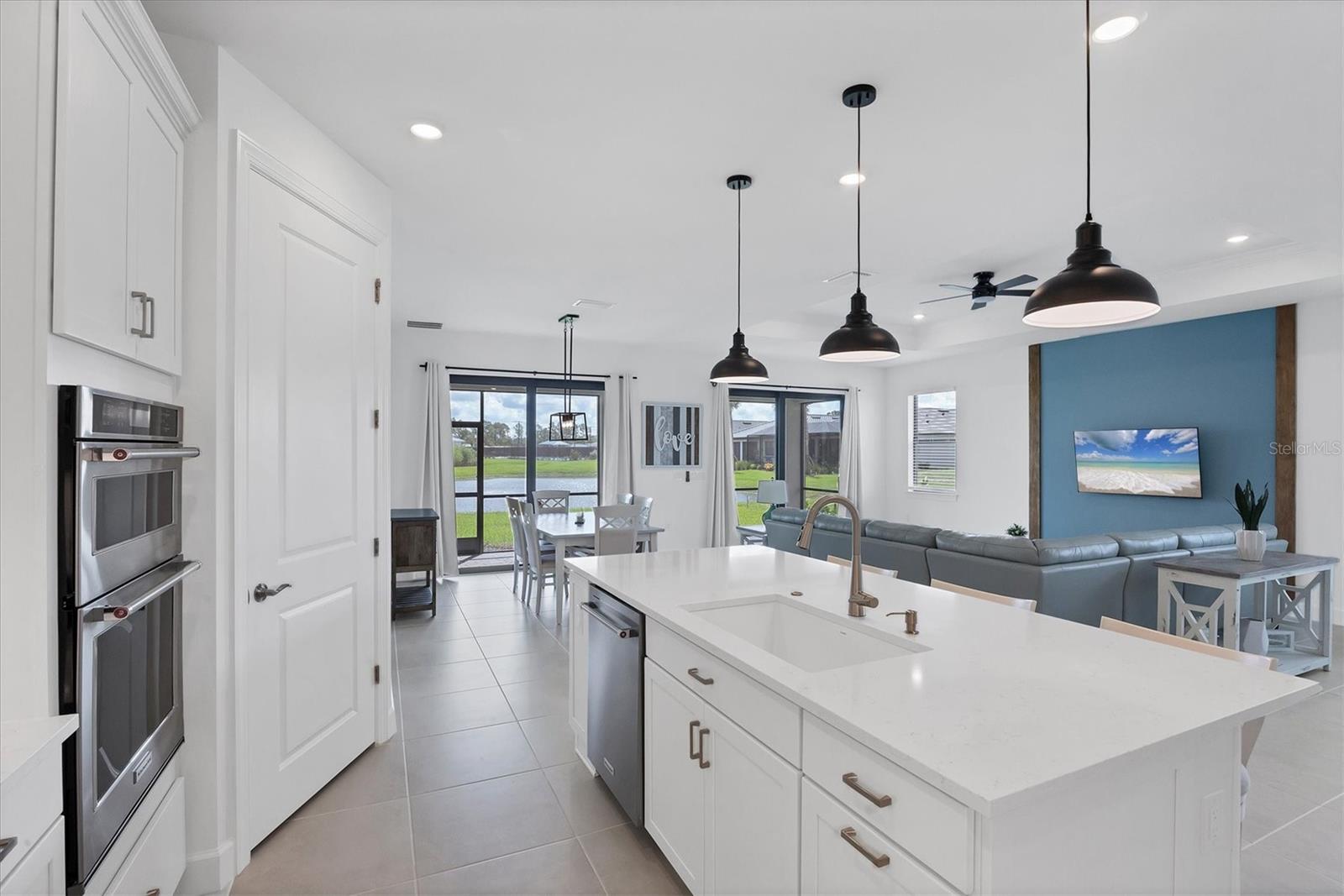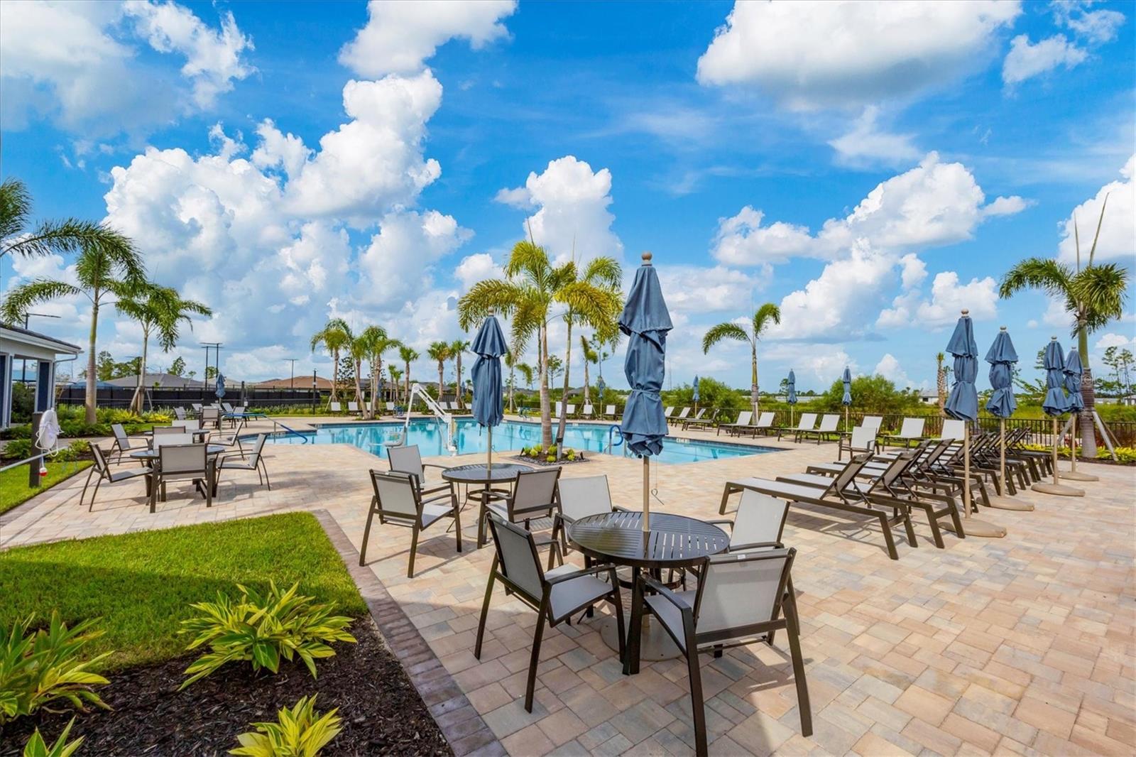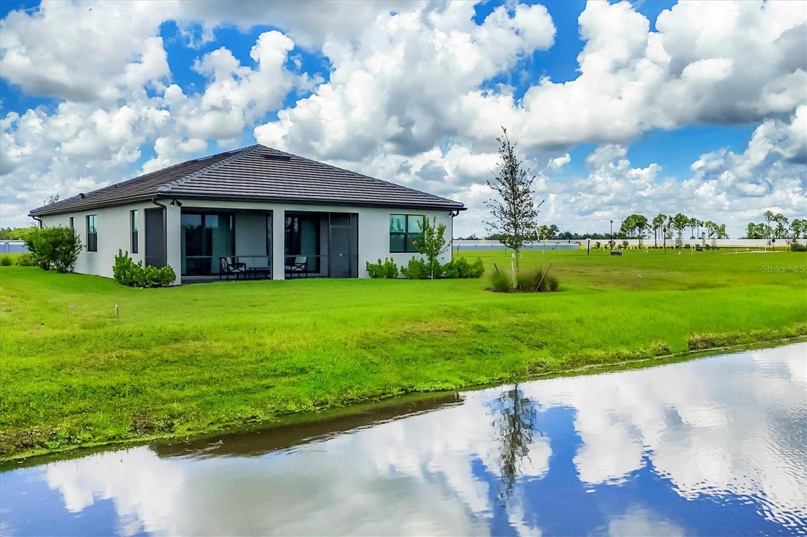 Why wait to build? This nearly new, lakefront Pulte Homes residence (Distinctive Series—Mystique floor plan) delivers the finishes and upgrades you want—already in place. Lived in for less than three months and just about one year old, it showcases beautiful stone-accented curb appeal and an extended gathering room that adds rare everyday living space. The premium waterfront lot offers peaceful views and room for a future pool. Inside, a smart great-room layout with a split-bedroom plan provides 3 bedrooms, 3 full baths, and a flex room with French doors, ideal for an office, den, or hobby space. Approximately 2,251 sq. ft. under air keeps everything spacious yet easy to maintain. The kitchen is both stylish and functional with shaker, soft-close cabinetry, a large walk-in pantry, quartz countertops, subway-tile backsplash, and a counter-height breakfast bar, perfect for prep and casual dining. Enjoy natural gas cooking with a cooktop plus in-wall oven and microwave. The private primary suite features a bath with dual sinks and a walk-in shower. Guests will appreciate the en-suite guest bedroom (Bedroom 3) for comfort and privacy. Flooring is tile throughout the main living areas (Bedroom 2 is carpeted). Thoughtful extras include a coat closet and a large laundry room with cabinetry, utility sink and a folding surface. The 2-car garage comes finished with an epoxy floor and an electric-vehicle charging station. Additional peace of mind: Hurricane rated IMPACT WINDOWS AND DOORS THROUGHOUT, transferrable BUILDER WARRANTY plus this home is NOT located in a flood zone. Located within Arbor Oaks at the Woodlands, a gated community, residents enjoy a resort-style amenity lineup: stunning clubhouse, heated pool and hot tub, pickleball, tennis, fitness center, poolside Barefoot Bar, BBQ grills, fire-pit lounge, bocce, dog park, and an activities director. HOA dues are $934/quarter and include lawn care and irrigation maintenance/repair. CDD fee is included in the property tax bill. You'll be less than 30 miles from award-winning Gulf beaches and just a few miles from I-75, local shopping, golf courses, and entertainment. Downtown Wellen Park and the new Atlanta Braves Stadium are only 20 minutes away. Immaculate, move-in ready, and upgraded beyond builder basics—this lakefront home delivers the lifestyle you’re seeking without the wait. Schedule your tour today.