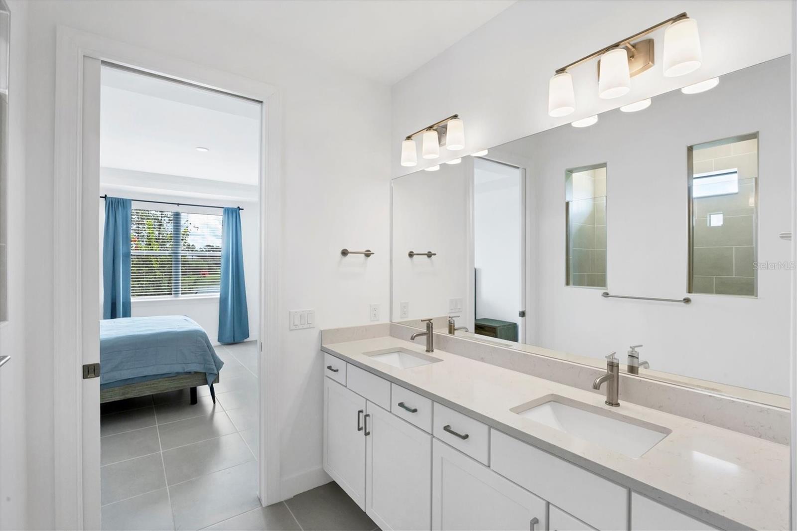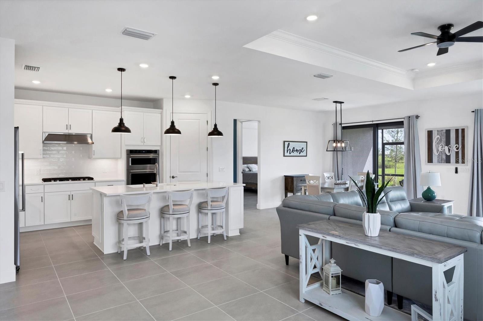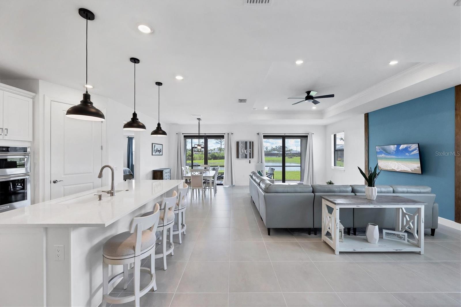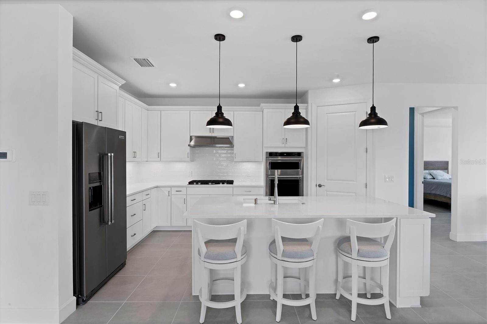 Why wait to build? This nearly new, lakefront Pulte Homes residence (Distinctive Series—Mystique floor plan) delivers the finishes and upgrades you want—already in place. Lived in for less than three months and just about one year old, it showcases beautiful stone-accented curb appeal and an extended gathering room that adds rare everyday living space. The premium waterfront lot offers peaceful views and room for a future pool. Inside, a smart great-room layout with a split-bedroom plan provides 3 bedrooms, 3 full baths, and a flex room with French doors, ideal for an office, den, or hobby space. Approximately 2,251 sq. ft. under air keeps everything spacious yet easy to maintain. The kitchen is both stylish and functional with shaker, soft-close cabinetry, a large walk-in pantry, quartz countertops, subway-tile backsplash, and a counter-height breakfast bar, perfect for prep and casual dining. Enjoy natural gas cooking with a cooktop plus in-wall oven and microwave. The private primary suite features a bath with dual sinks and a walk-in shower. Guests will appreciate the en-suite guest bedroom (Bedroom 3) for comfort and privacy. Flooring is tile throughout the main living areas (Bedroom 2 is carpeted). Thoughtful extras include a coat closet and a large laundry room with cabinetry, utility sink and a folding surface. The 2-car garage comes finished with an epoxy floor and an electric-vehicle charging station. Additional peace of mind: Hurricane rated IMPACT WINDOWS AND DOORS THROUGHOUT, transferrable BUILDER WARRANTY plus this home is NOT located in a flood zone. Located within Arbor Oaks at the Woodlands, a gated community, residents enjoy a resort-style amenity lineup: stunning clubhouse, heated pool and hot tub, pickleball, tennis, fitness center, poolside Barefoot Bar, BBQ grills, fire-pit lounge, bocce, dog park, and an activities director. HOA dues are $934/quarter and include lawn care and irrigation maintenance/repair. CDD fee is included in the property tax bill. You'll be less than 30 miles from award-winning Gulf beaches and just a few miles from I-75, local shopping, golf courses, and entertainment. Downtown Wellen Park and the new Atlanta Braves Stadium are only 20 minutes away. Immaculate, move-in ready, and upgraded beyond builder basics—this lakefront home delivers the lifestyle you’re seeking without the wait. Schedule your tour today.