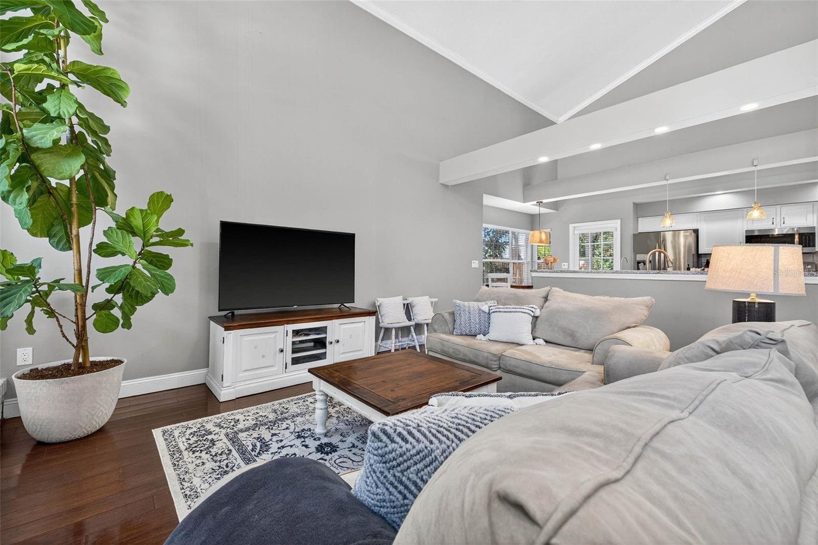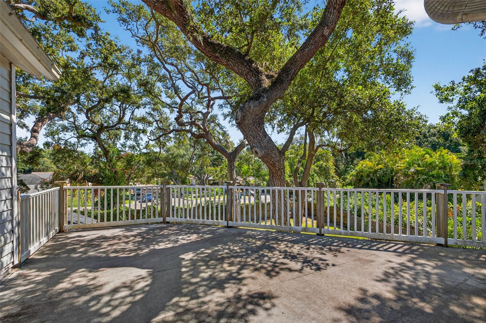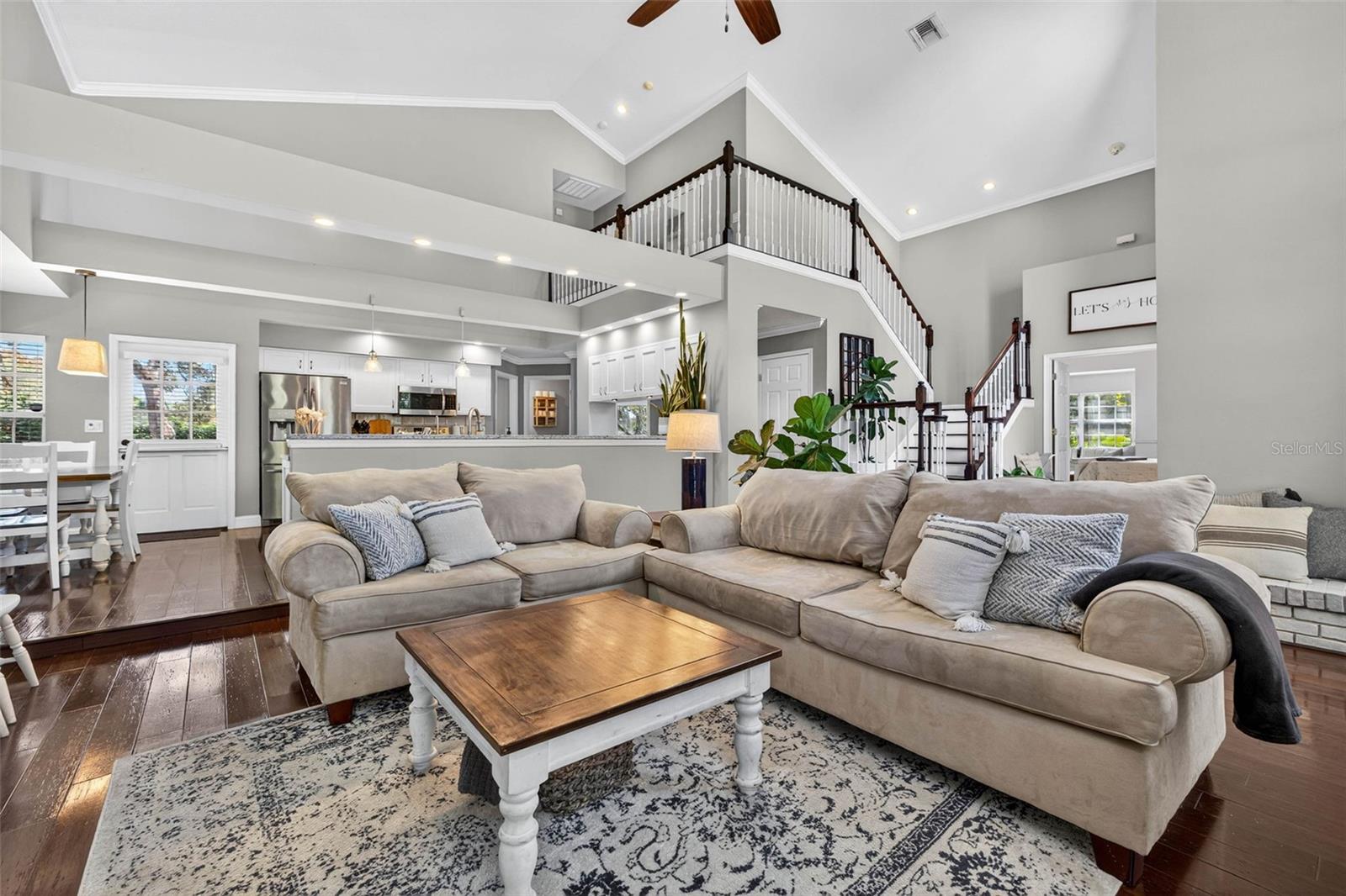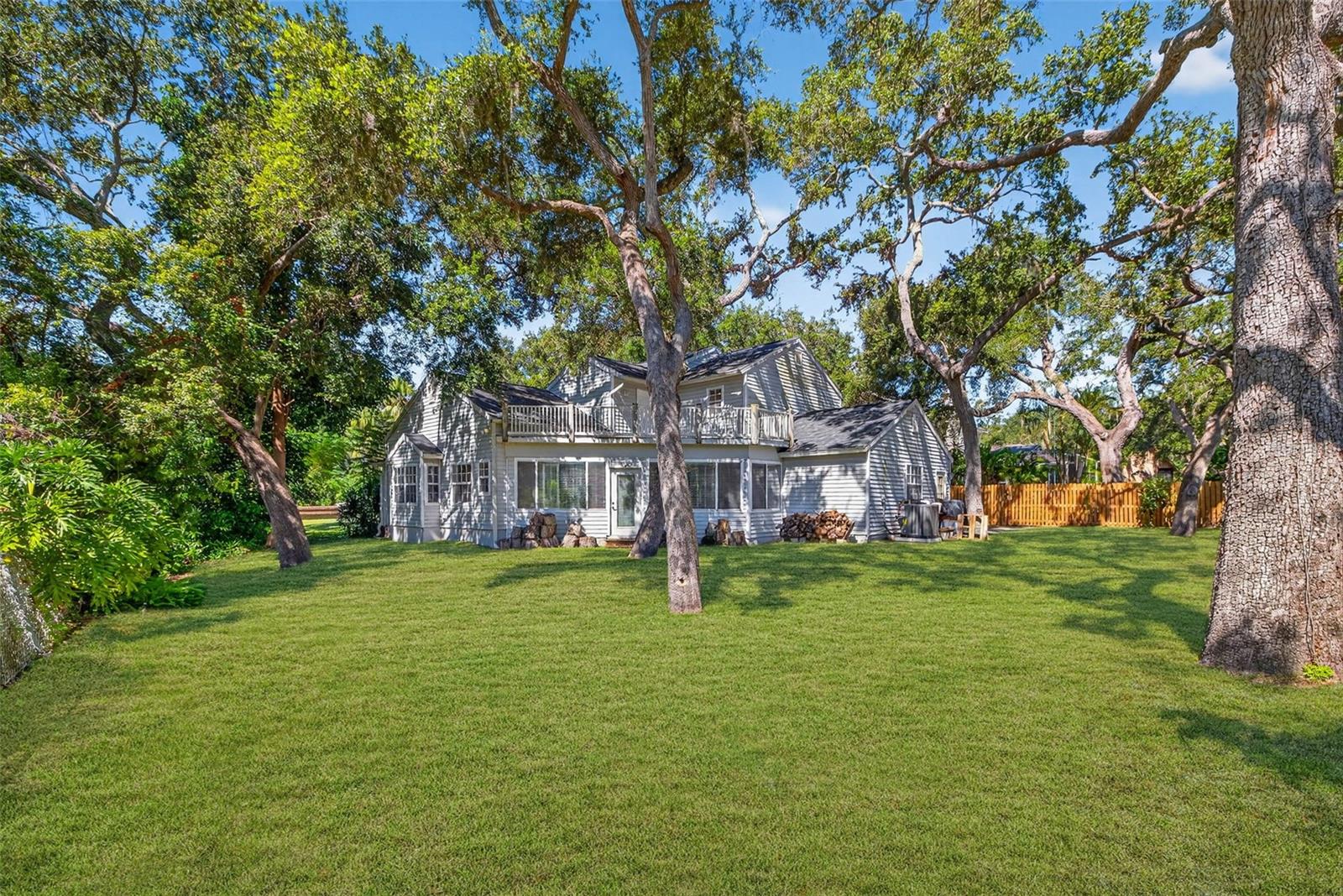 Welcome to 1937 Oakridge Court, a hidden Clearwater retreat perfectly positioned on nearly 1/2 acre in a quiet cul-de-sac beside a peaceful creek. This beautifully maintained 3-bedroom plus bonus room, 2.5-bath home combines modern comfort with timeless character, featuring soaring 20+ foot vaulted ceilings, and a roof top deck for enjoying treetop views and Florida sunsets. Some other amazing features of the home include luxurious bamboo flooring, a wood-burning fireplace that anchors the light-filled living space. The open kitchen showcases granite countertops, shaker cabinetry, Frigidaire stainless steel appliances, under-cabinet lighting, and a reverse osmosis water system, while smart lighting, a Honeywell thermostat, and a Ring security system bring convenience and peace of mind. The ground-floor primary suite offers a custom reading nook, double vanity, walk-in shower, and custom closet systems, while upstairs features two additional bedrooms with a Jack-and-Jill bath, and of course the rooftop deck. Every detail of this property reflects care and quality, from the Rheem HVAC (2025), shingle roof (2018), and 50-gallon water heater (2018) to the Amana washer and dryer (2018), Rain Bird irrigation system, and hardwired speaker setup. With crown molding throughout, a covered front porch, oversized yard, and furnishings negotiable, this home delivers comfort, style, and functionality in one exceptional package. Conveniently located near top-rated schools, shopping, dining, and Clearwater’s award-winning beaches, 1937 Oakridge Court offers the rare combination of privacy, space, and sophistication — the perfect place to call home.