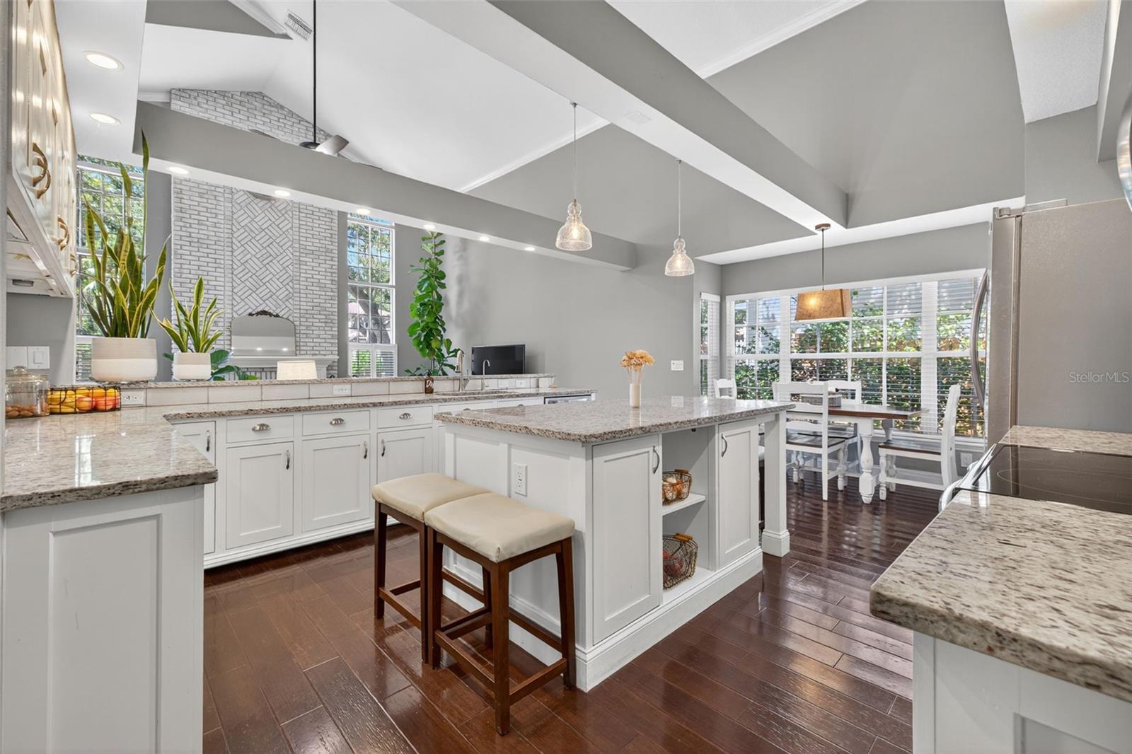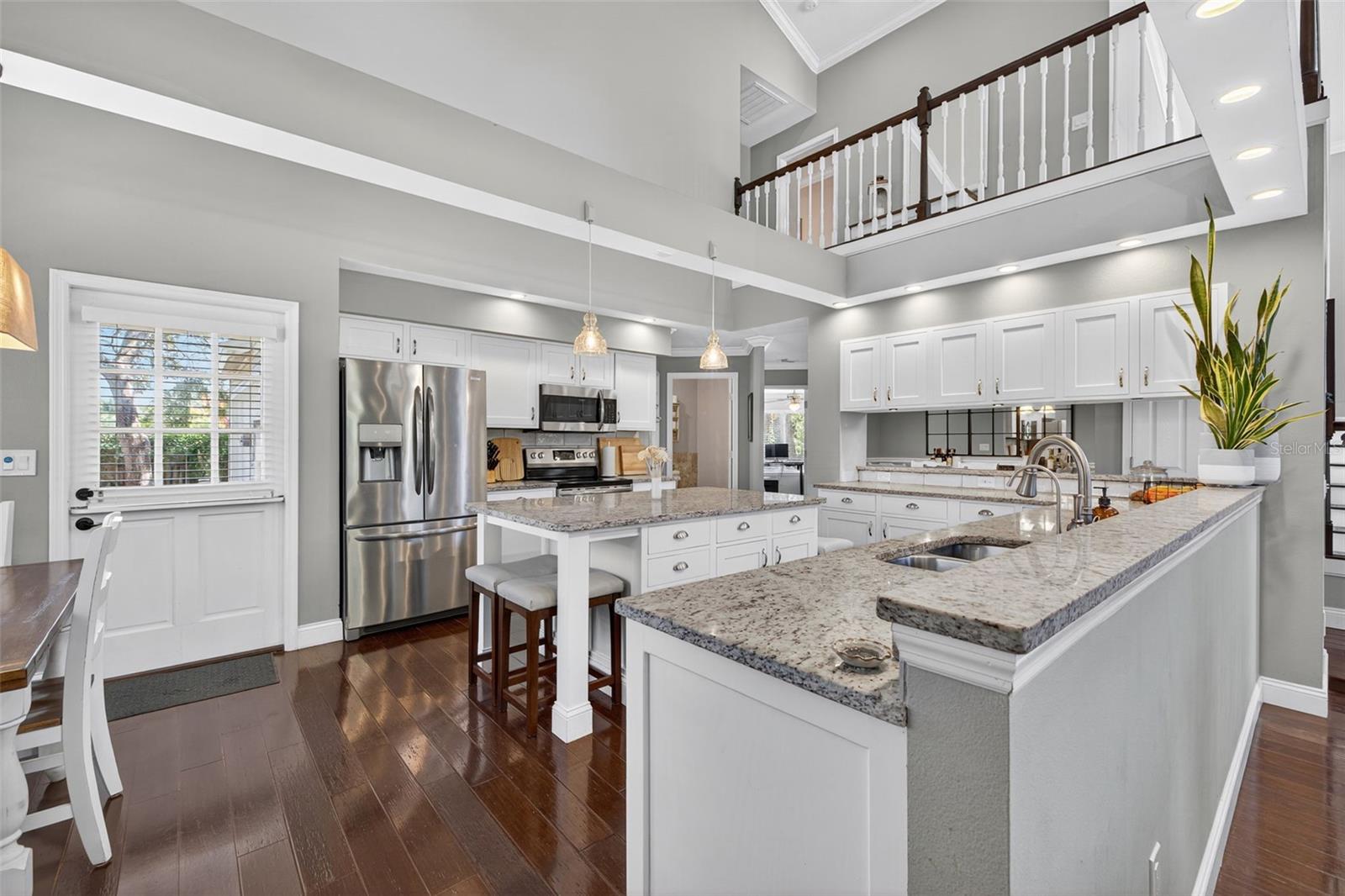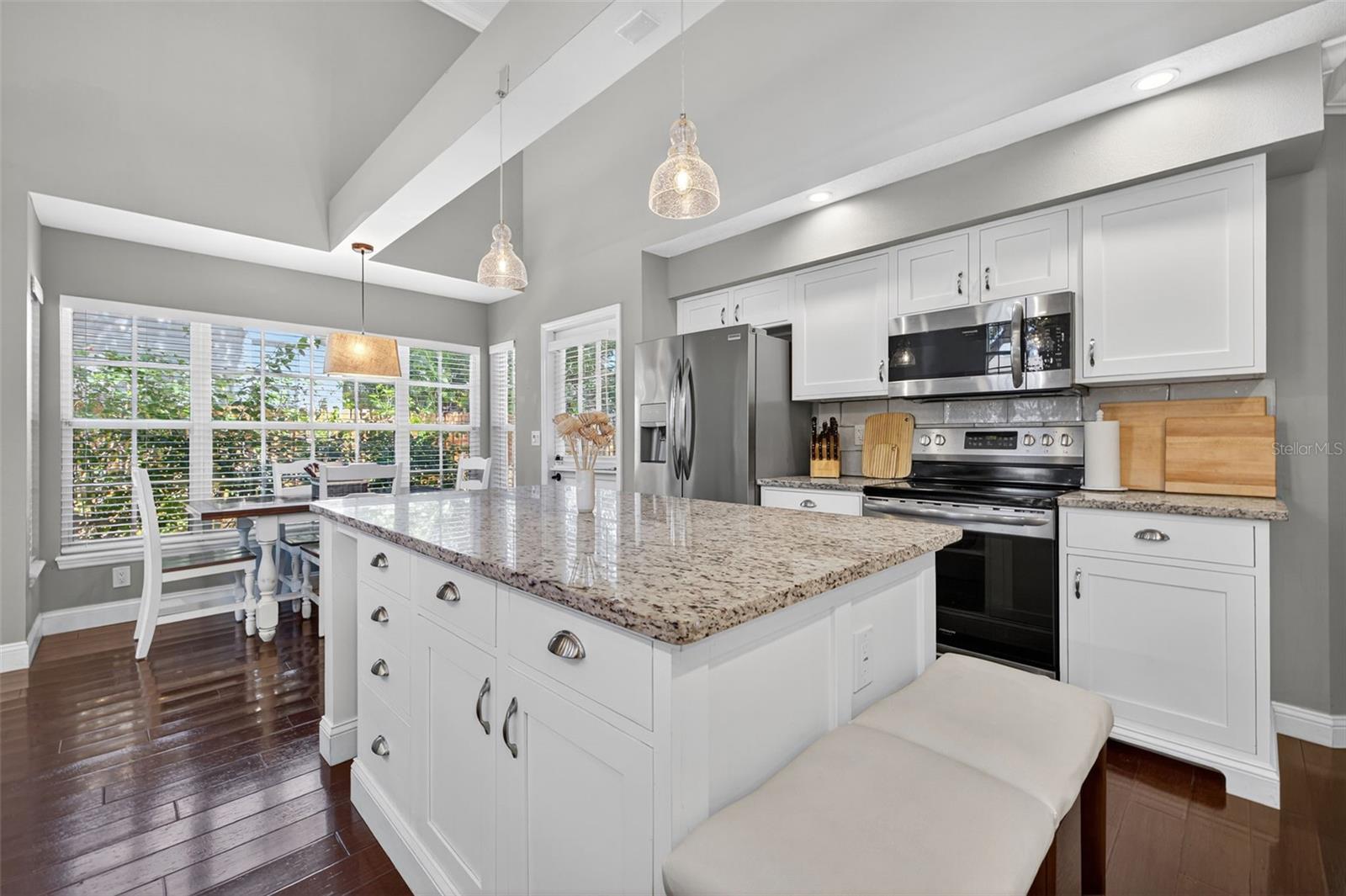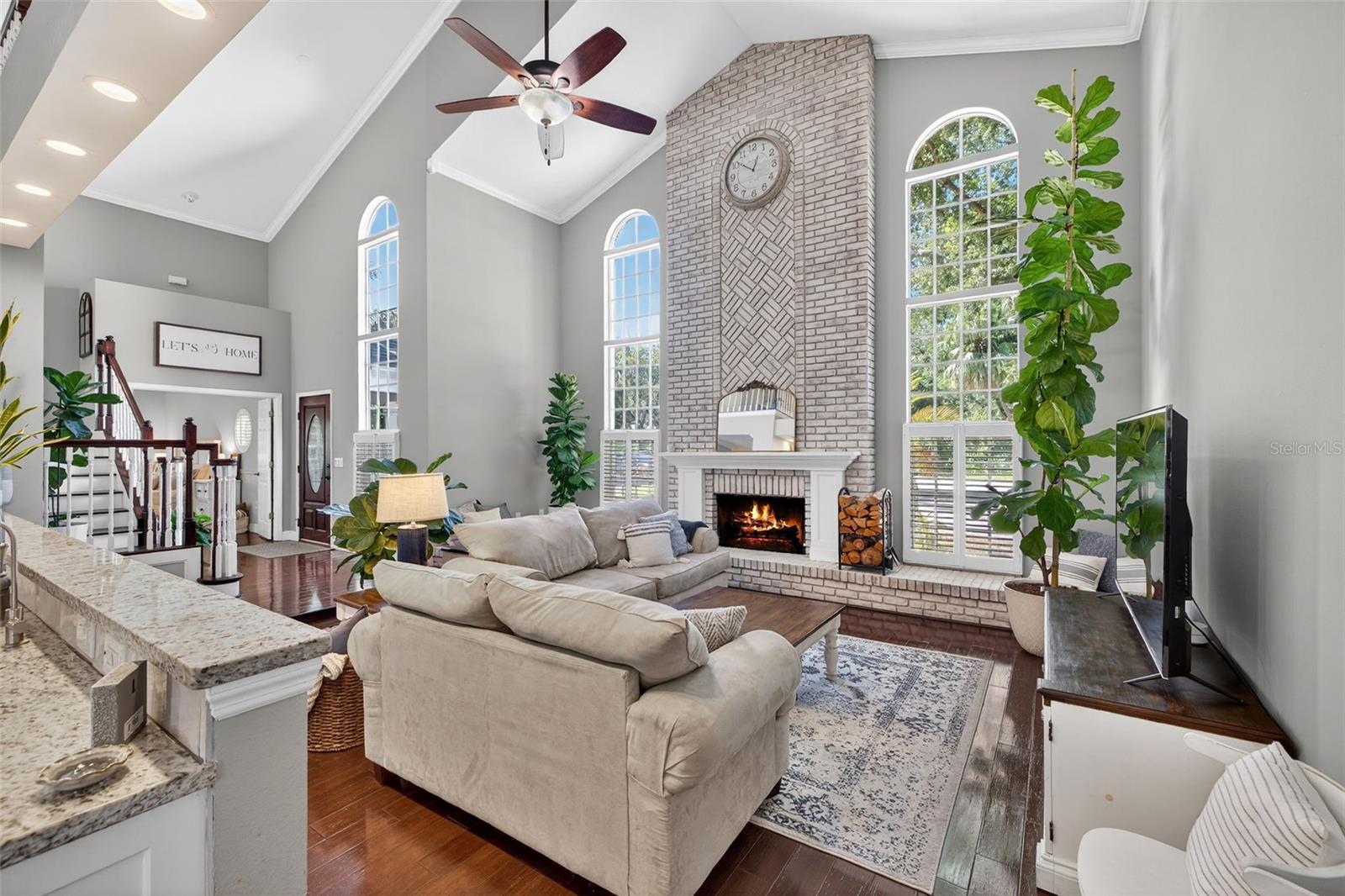 Welcome to 1937 Oakridge Court, a hidden Clearwater retreat perfectly positioned on nearly 1/2 acre in a quiet cul-de-sac beside a peaceful creek. This beautifully maintained 3-bedroom plus bonus room, 2.5-bath home combines modern comfort with timeless character, featuring soaring 20+ foot vaulted ceilings, and a roof top deck for enjoying treetop views and Florida sunsets. Some other amazing features of the home include luxurious bamboo flooring, a wood-burning fireplace that anchors the light-filled living space. The open kitchen showcases granite countertops, shaker cabinetry, Frigidaire stainless steel appliances, under-cabinet lighting, and a reverse osmosis water system, while smart lighting, a Honeywell thermostat, and a Ring security system bring convenience and peace of mind. The ground-floor primary suite offers a custom reading nook, double vanity, walk-in shower, and custom closet systems, while upstairs features two additional bedrooms with a Jack-and-Jill bath, and of course the rooftop deck. Every detail of this property reflects care and quality, from the Rheem HVAC (2025), shingle roof (2018), and 50-gallon water heater (2018) to the Amana washer and dryer (2018), Rain Bird irrigation system, and hardwired speaker setup. With crown molding throughout, a covered front porch, oversized yard, and furnishings negotiable, this home delivers comfort, style, and functionality in one exceptional package. Conveniently located near top-rated schools, shopping, dining, and Clearwater’s award-winning beaches, 1937 Oakridge Court offers the rare combination of privacy, space, and sophistication — the perfect place to call home.