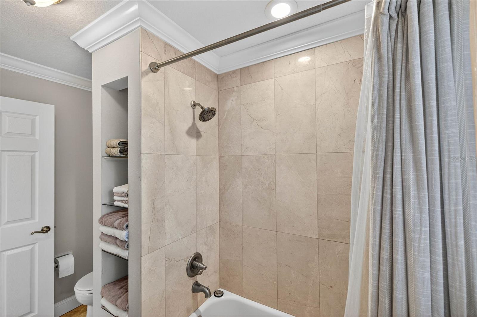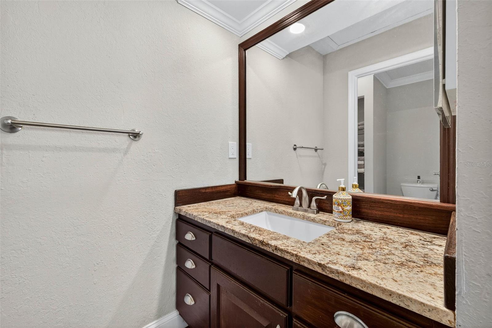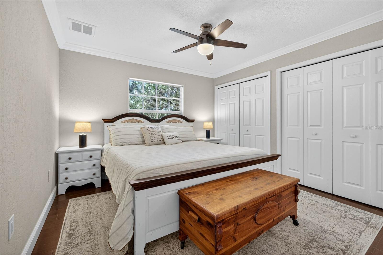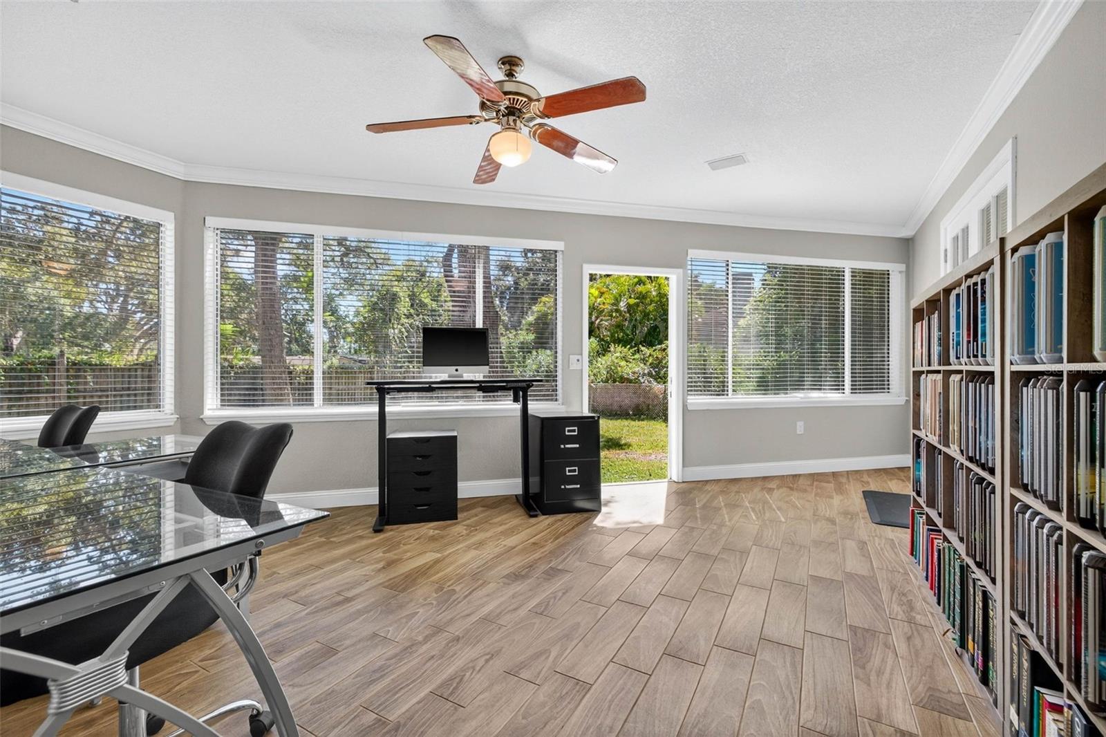 Welcome to 1937 Oakridge Court, a hidden Clearwater retreat perfectly positioned on nearly 1/2 acre in a quiet cul-de-sac beside a peaceful creek. This beautifully maintained 3-bedroom plus bonus room, 2.5-bath home combines modern comfort with timeless character, featuring soaring 20+ foot vaulted ceilings, and a roof top deck for enjoying treetop views and Florida sunsets. Some other amazing features of the home include luxurious bamboo flooring, a wood-burning fireplace that anchors the light-filled living space. The open kitchen showcases granite countertops, shaker cabinetry, Frigidaire stainless steel appliances, under-cabinet lighting, and a reverse osmosis water system, while smart lighting, a Honeywell thermostat, and a Ring security system bring convenience and peace of mind. The ground-floor primary suite offers a custom reading nook, double vanity, walk-in shower, and custom closet systems, while upstairs features two additional bedrooms with a Jack-and-Jill bath, and of course the rooftop deck. Every detail of this property reflects care and quality, from the Rheem HVAC (2025), shingle roof (2018), and 50-gallon water heater (2018) to the Amana washer and dryer (2018), Rain Bird irrigation system, and hardwired speaker setup. With crown molding throughout, a covered front porch, oversized yard, and furnishings negotiable, this home delivers comfort, style, and functionality in one exceptional package. Conveniently located near top-rated schools, shopping, dining, and Clearwater’s award-winning beaches, 1937 Oakridge Court offers the rare combination of privacy, space, and sophistication — the perfect place to call home.