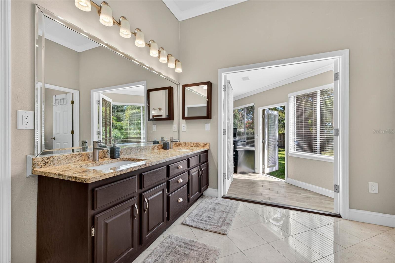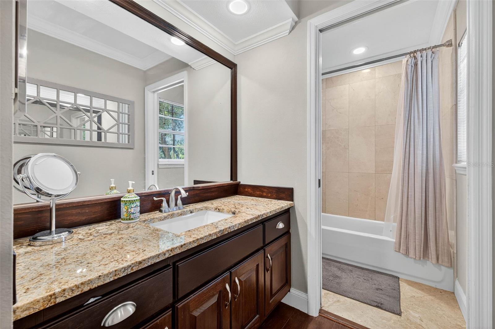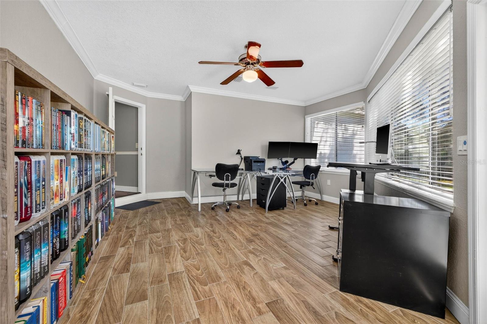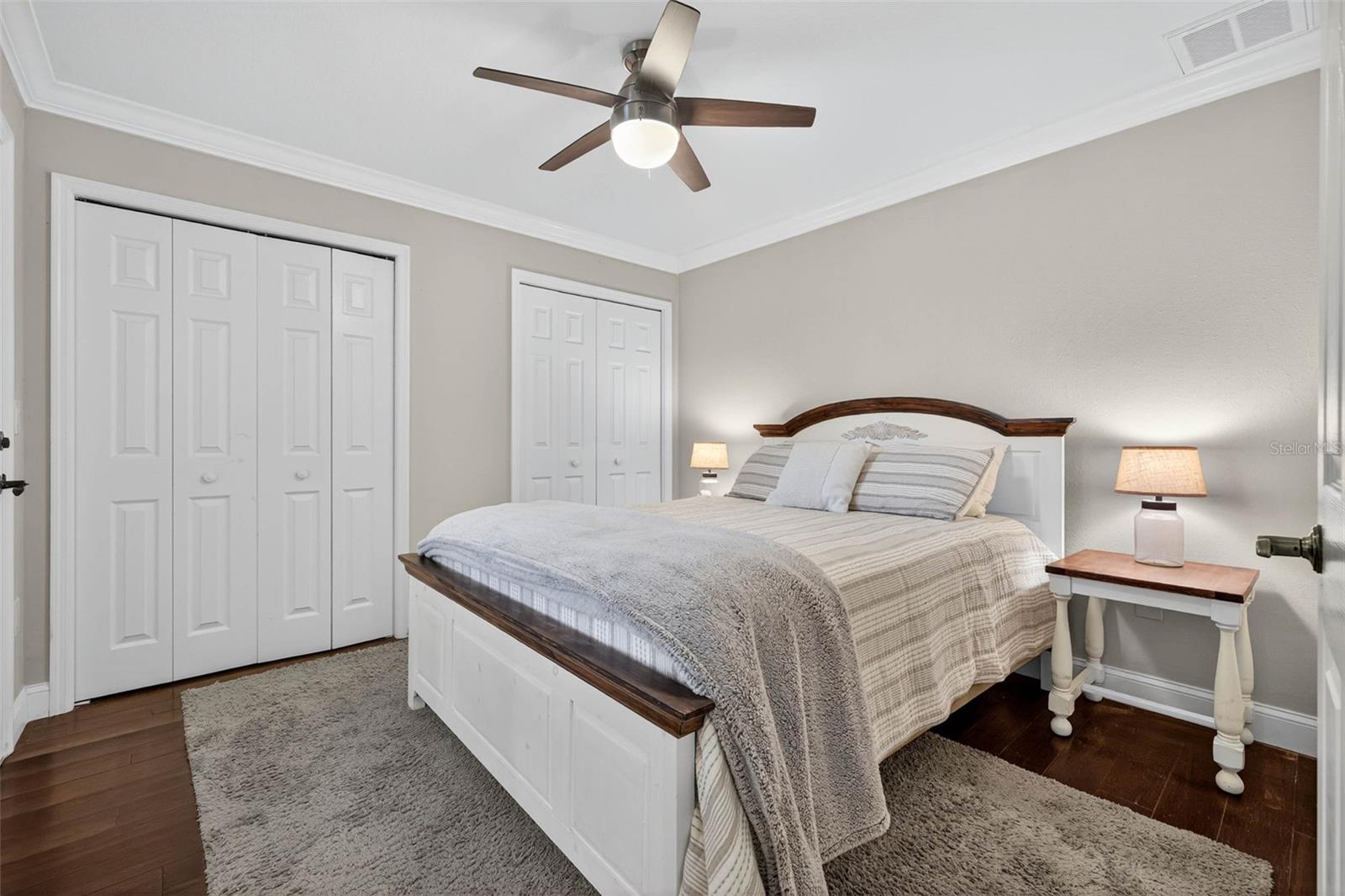 Welcome to 1937 Oakridge Court, a hidden Clearwater retreat perfectly positioned on nearly 1/2 acre in a quiet cul-de-sac beside a peaceful creek. This beautifully maintained 3-bedroom plus bonus room, 2.5-bath home combines modern comfort with timeless character, featuring soaring 20+ foot vaulted ceilings, and a roof top deck for enjoying treetop views and Florida sunsets. Some other amazing features of the home include luxurious bamboo flooring, a wood-burning fireplace that anchors the light-filled living space. The open kitchen showcases granite countertops, shaker cabinetry, Frigidaire stainless steel appliances, under-cabinet lighting, and a reverse osmosis water system, while smart lighting, a Honeywell thermostat, and a Ring security system bring convenience and peace of mind. The ground-floor primary suite offers a custom reading nook, double vanity, walk-in shower, and custom closet systems, while upstairs features two additional bedrooms with a Jack-and-Jill bath, and of course the rooftop deck. Every detail of this property reflects care and quality, from the Rheem HVAC (2025), shingle roof (2018), and 50-gallon water heater (2018) to the Amana washer and dryer (2018), Rain Bird irrigation system, and hardwired speaker setup. With crown molding throughout, a covered front porch, oversized yard, and furnishings negotiable, this home delivers comfort, style, and functionality in one exceptional package. Conveniently located near top-rated schools, shopping, dining, and Clearwater’s award-winning beaches, 1937 Oakridge Court offers the rare combination of privacy, space, and sophistication — the perfect place to call home.