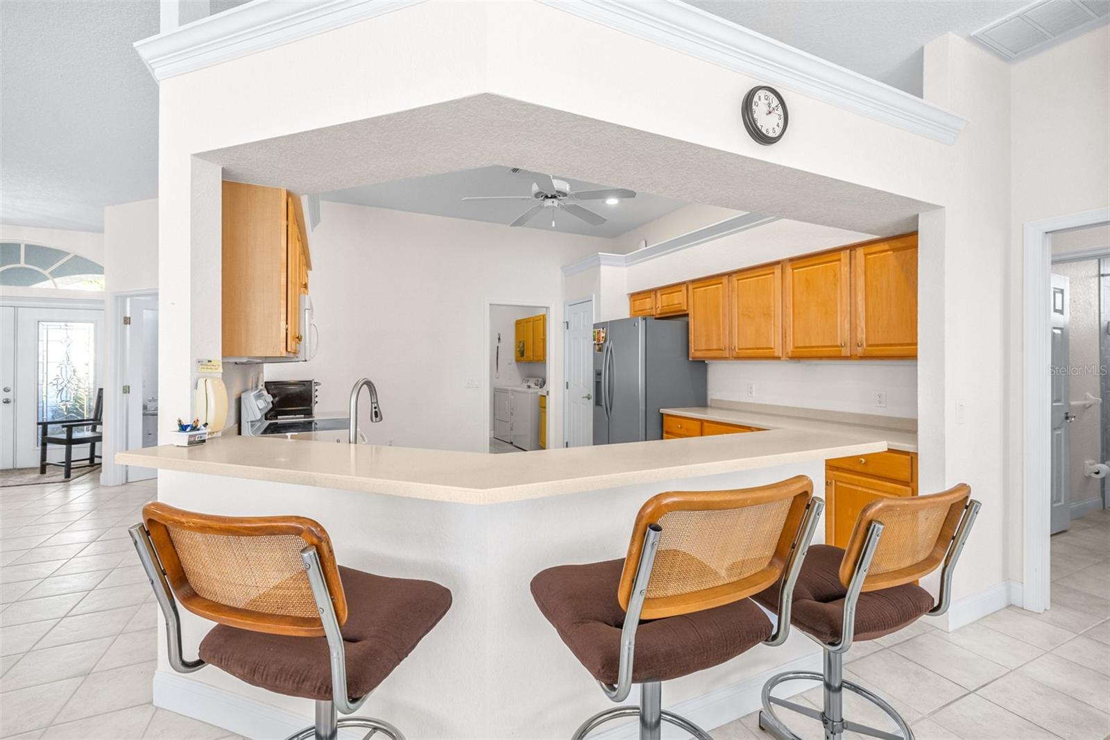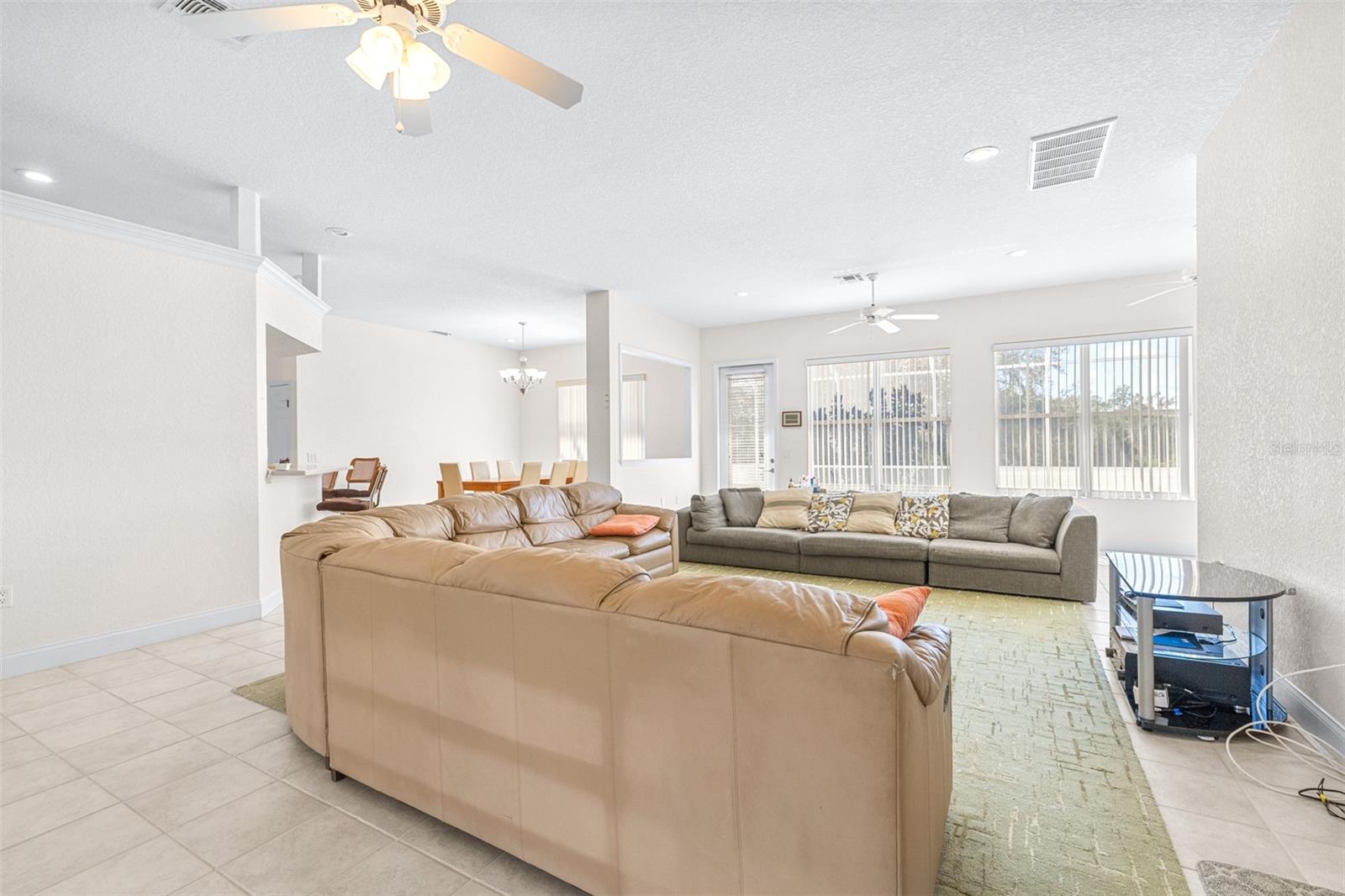 Stunning Golf Course Home in Huntington Hills, North Lakeland. Nestled along the 7th fairway of the world renowned Huntington Hills Golf Club, this immaculately maintained 3-bedroom, 2-bath single-family home offers an unmatched blend of comfort, style, and breathtaking golf course views. Boasting an open split floor plan, this residence is designed for both relaxation and entertaining, with abundant natural light filling the spacious, bright, and airy interior. Step outside to the huge, oversized lanai, perfectly positioned to capture spectacular views of multiple golf holes and the surrounding farmland—an ideal space to unwind or host gatherings while enjoying the tranquil scenery. The oversized 29-foot garage provides ample room for vehicles, storage, or even a workshop. Recent major updates include a new roof (2025) and newer AC system, ensuring peace of mind for years to come. The interior features solid surface countertops, generous living spaces, and all the comforts of a well-cared-for, thoughtfully updated home. This home is part of a vibrant resort-style community offering a clubhouse, pool, restaurant, bar, and golf course with optional memberships. Residents also enjoy access to a park, lake, spacious dock, and boat launch—perfect for outdoor enthusiasts. Conveniently located near shopping, airports, and world-famous theme parks, all within a 45-minute drive. Included in the sale are select furnishings, a garage refrigerator, and a golf cart, making this beautiful home move-in ready. Easy to show—schedule your private tour today and experience the best of Florida golf course living!