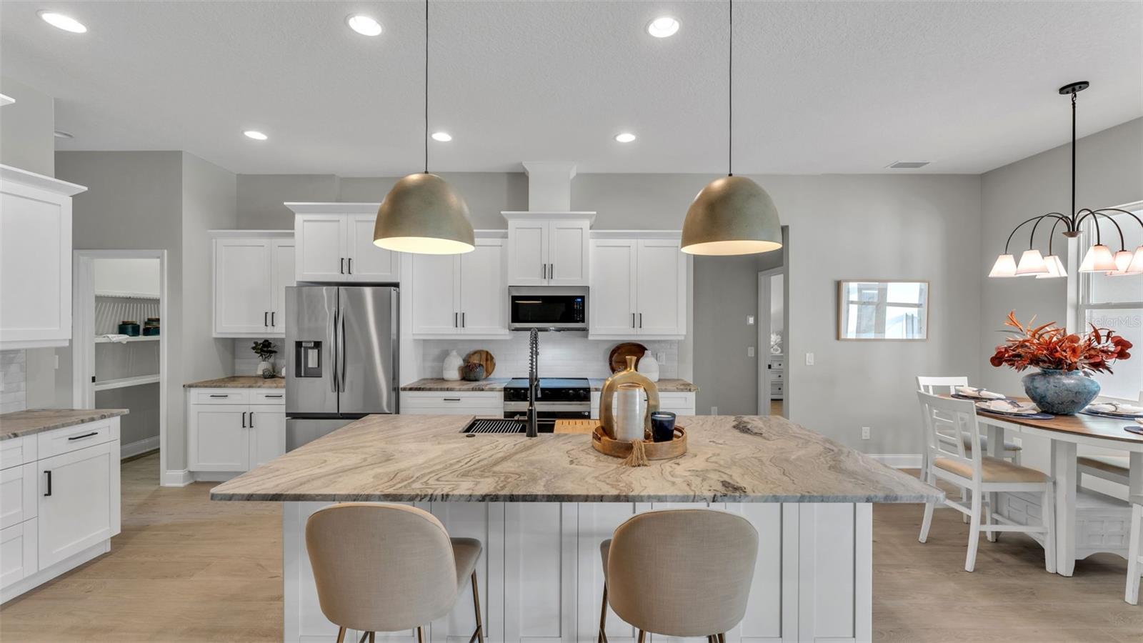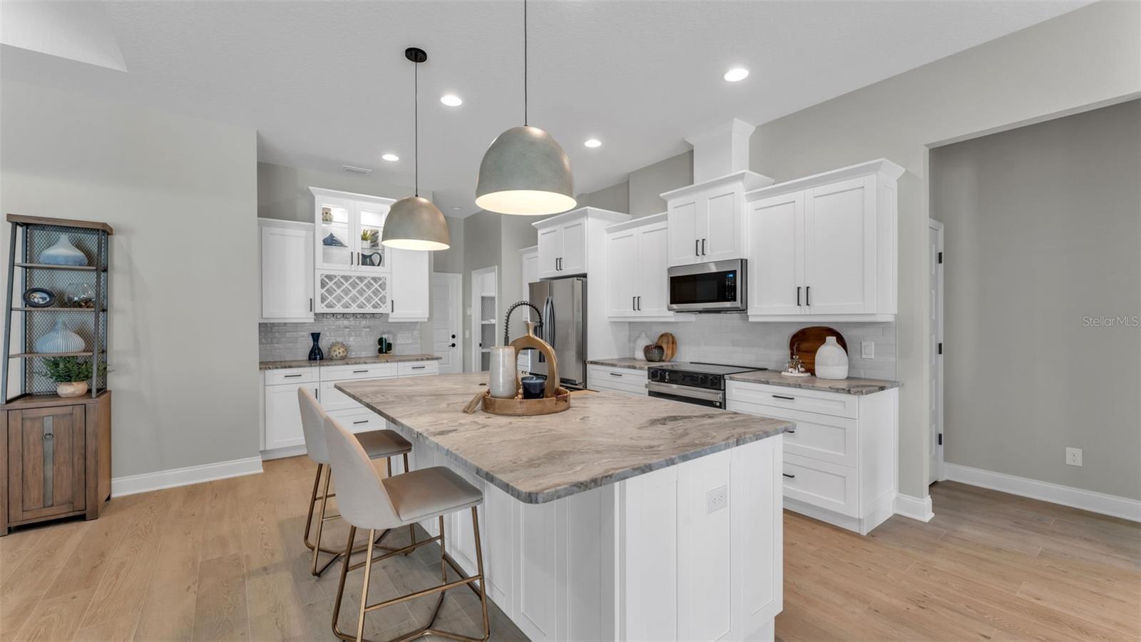 Under Construction. Gorgeous, new pool home in South Lakeland subdivision! Open, spacious split floor plan with 4 bedrooms and 3 full baths! Stunning beam ceilings in great room & tray in master bedroom. Wood tile floors throughout, except bedrooms! The kitchen features white Shaker-style cabinets, bar area, upgraded appliances, stone counter tops, and lots of counter space. Custom closets included. Beautiful screened pool area with oversized lanai! Top quality home tastefully designed by an interior decorator! Pictures reflect the finished product. Furniture & accessories are not included. Realtor/Owner.