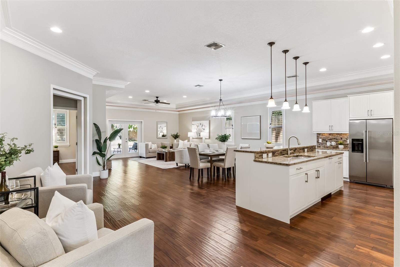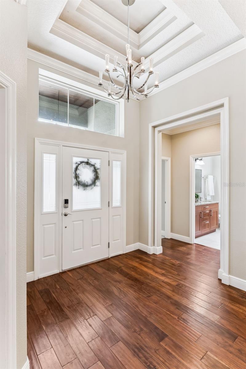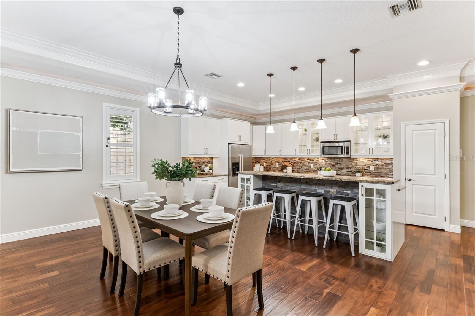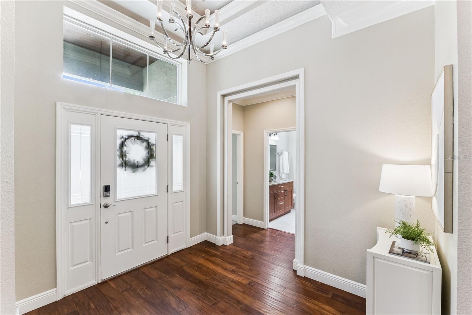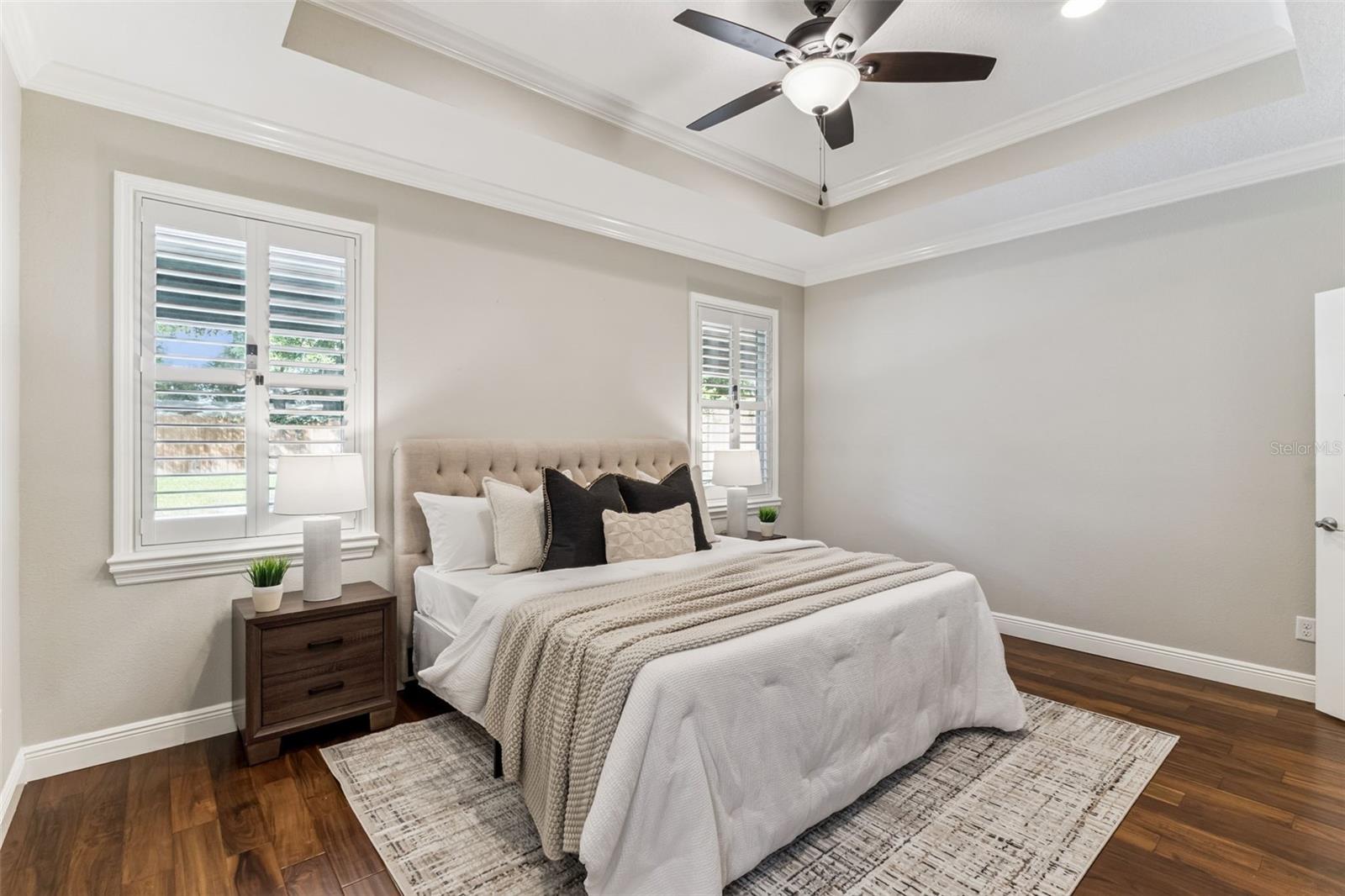 Take a look at this exquisite 3 bed, 2.5 bath, one story POOL home with NEW ROOF - 2025, LeafFilter Gutter Guard - 2025 AND PAID OFF SOLAR PANELS (whole house). NO HOA. Resting on half an acre! Engineered hardwood flooring in primary bedroom, living, dining & kitchen. Primary closet features custom-built ELFI titanium closets with added wood finishes. Modern, classic style chandeliers in foyer & dining room, interior lighting package, double crown molding and the spacious floorplan offers a stylish yet comfortable place for any type of setting. The blackout Plantation shutters, ceiling fans, and solar panels add to the efficiency of the house. Beautiful backyard with covered rain gutters, wood fence, extended deck and two side lighted entrances offers the perfect setting for relaxation! Designated half bath in patio area! Smoke detectors in every room, carbon monoxide detector and dual key pad alarm, key chain and smart device controlled system. This gorgeous home also offers a custom designed SALTWATER POOL and Jacuzzi, light package, waterfalls, sitting areas and heating package! Location is convenient to highways, airport, shopping & downtown! Come see this incredible home TODAY!