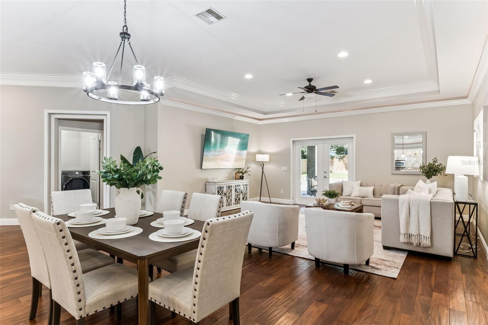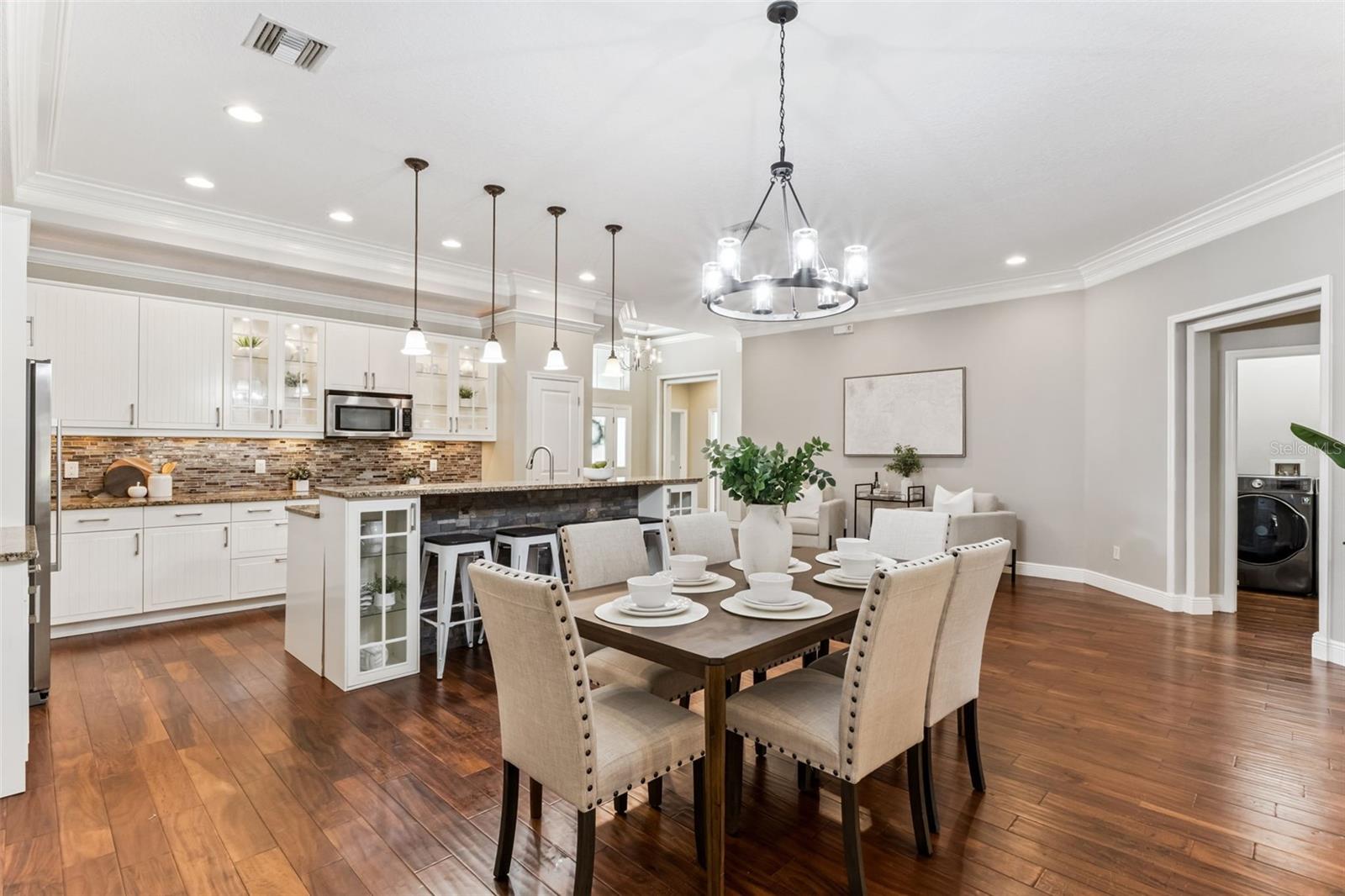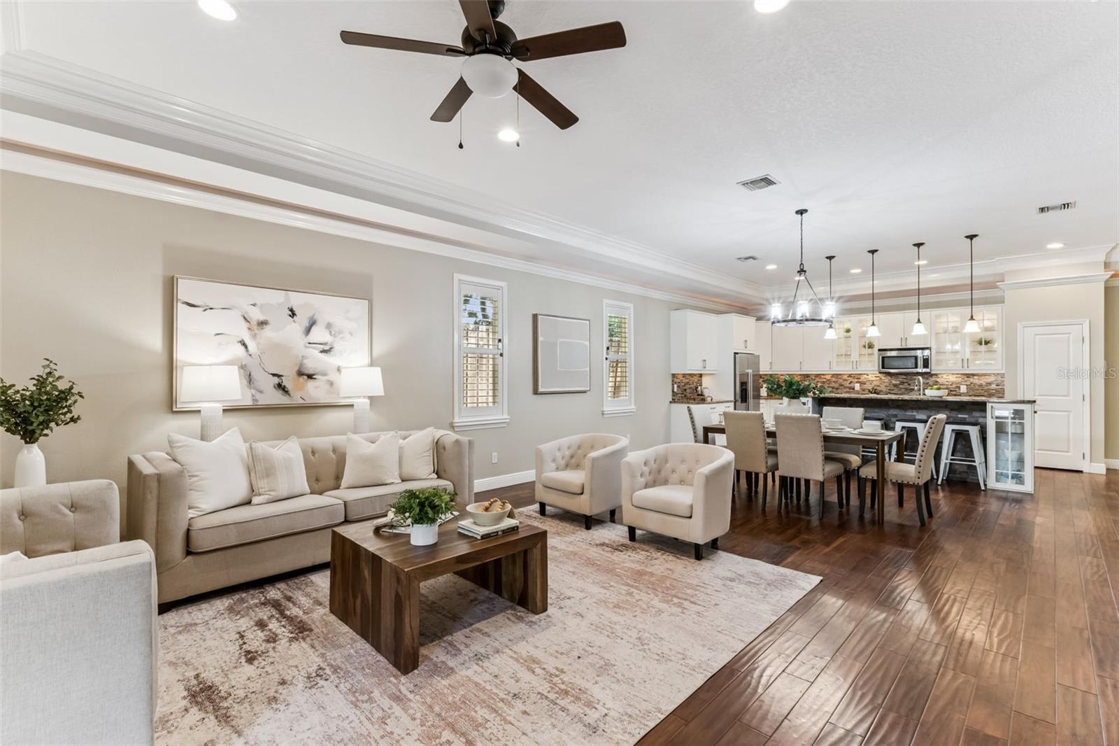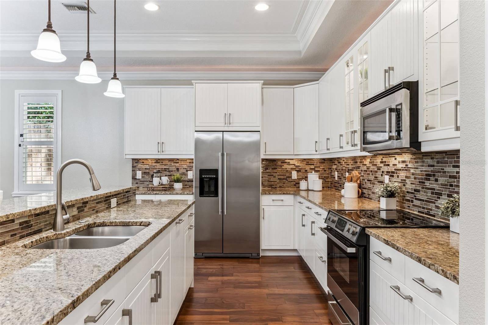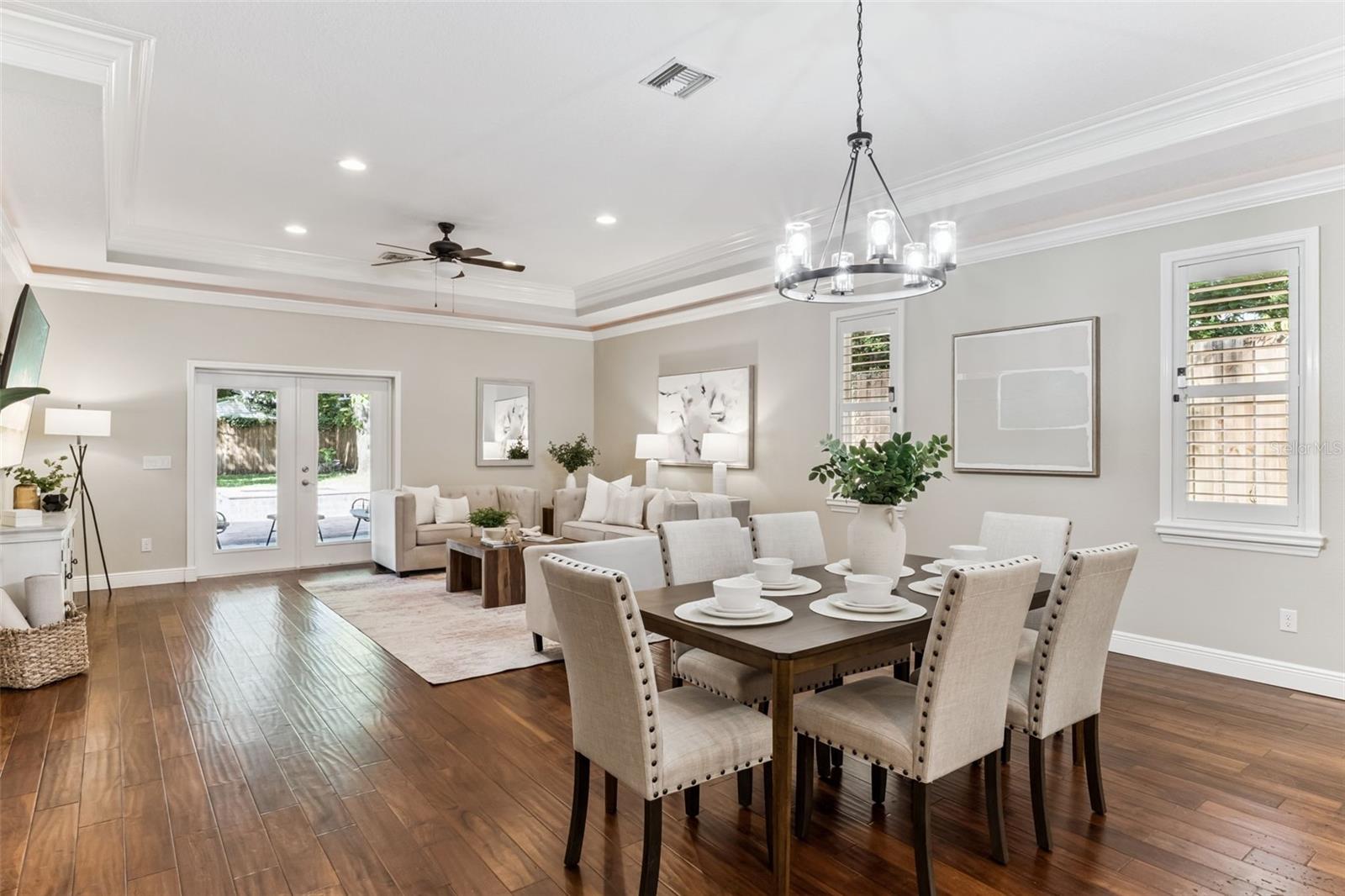 Take a look at this exquisite 3 bed, 2.5 bath, one story POOL home with NEW ROOF - 2025, LeafFilter Gutter Guard - 2025 AND PAID OFF SOLAR PANELS (whole house). NO HOA. Resting on half an acre! Engineered hardwood flooring in primary bedroom, living, dining & kitchen. Primary closet features custom-built ELFI titanium closets with added wood finishes. Modern, classic style chandeliers in foyer & dining room, interior lighting package, double crown molding and the spacious floorplan offers a stylish yet comfortable place for any type of setting. The blackout Plantation shutters, ceiling fans, and solar panels add to the efficiency of the house. Beautiful backyard with covered rain gutters, wood fence, extended deck and two side lighted entrances offers the perfect setting for relaxation! Designated half bath in patio area! Smoke detectors in every room, carbon monoxide detector and dual key pad alarm, key chain and smart device controlled system. This gorgeous home also offers a custom designed SALTWATER POOL and Jacuzzi, light package, waterfalls, sitting areas and heating package! Location is convenient to highways, airport, shopping & downtown! Come see this incredible home TODAY!