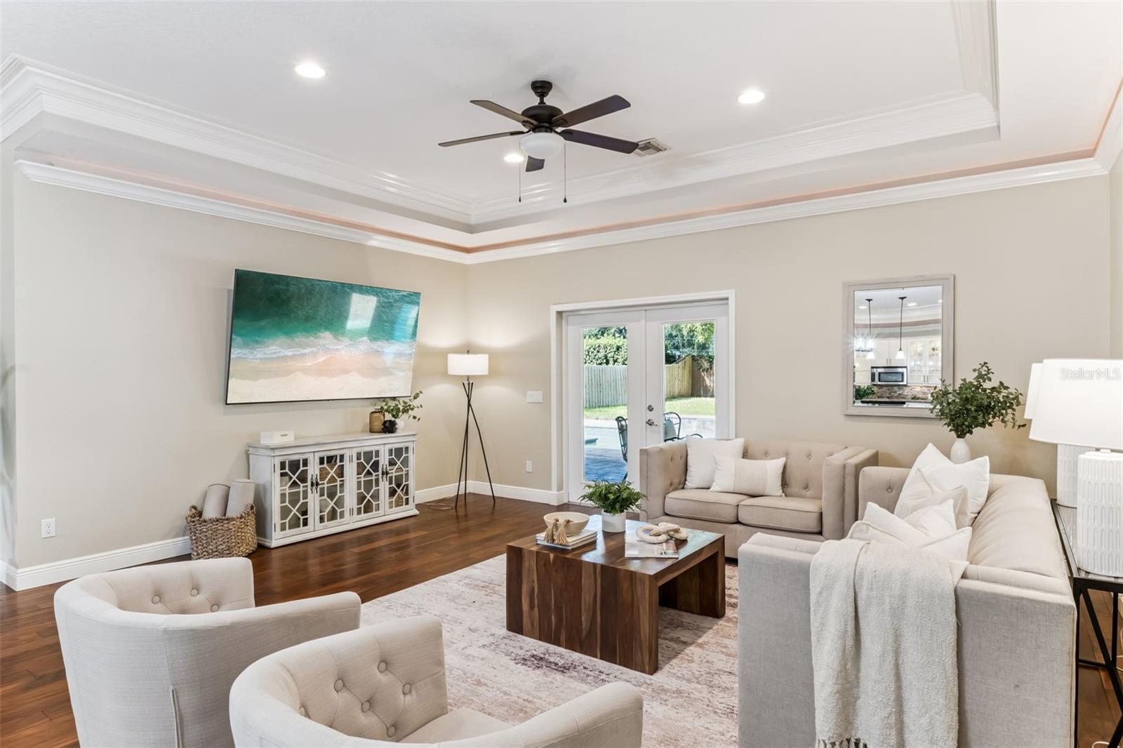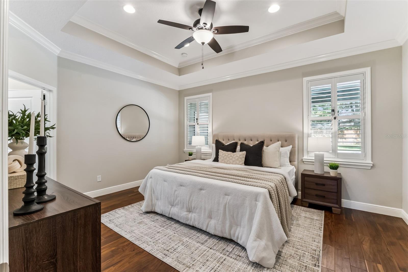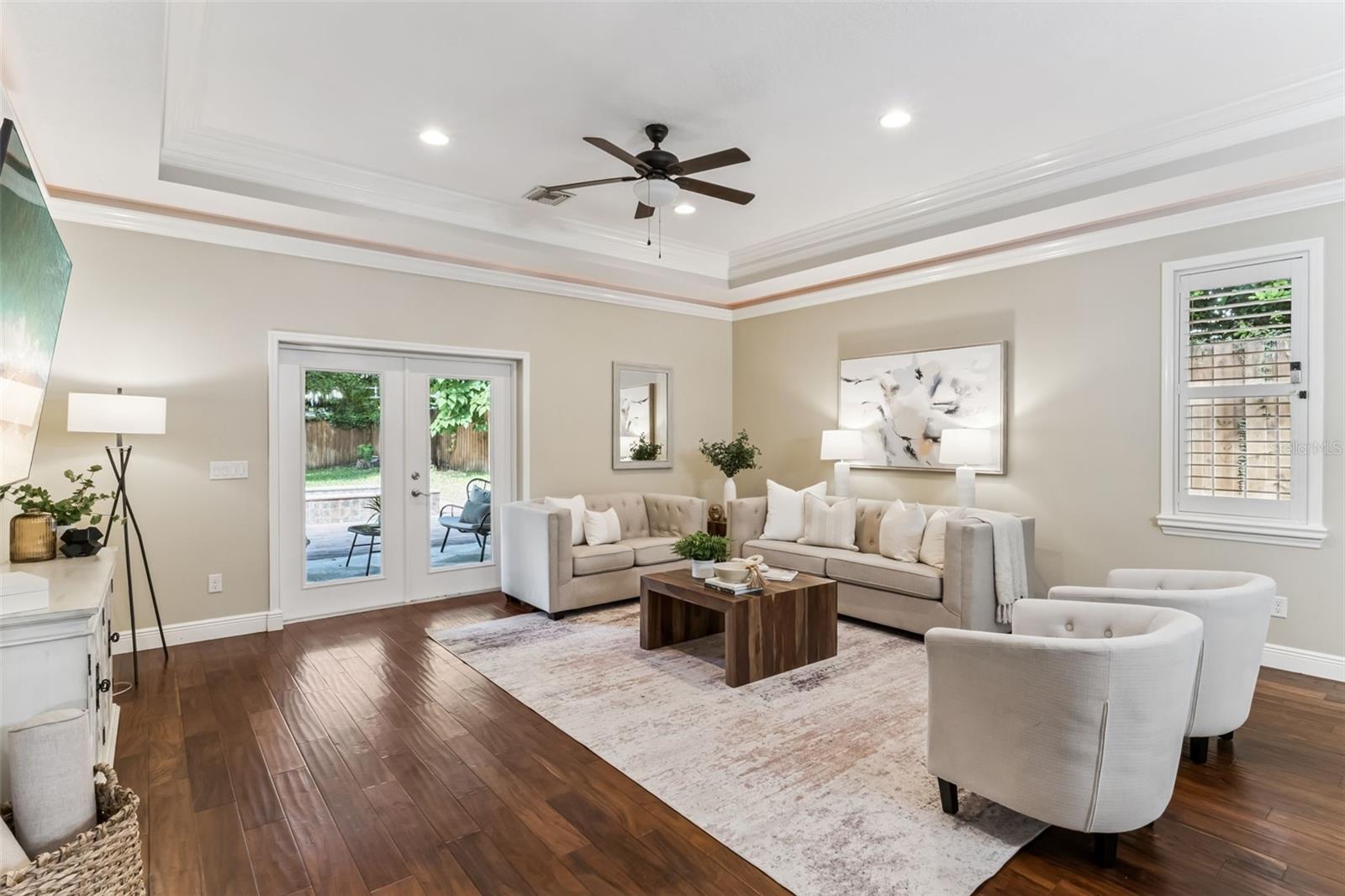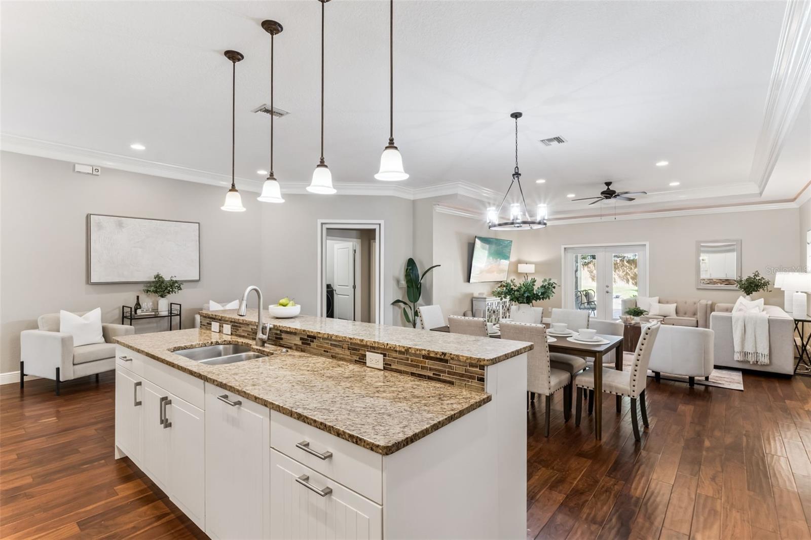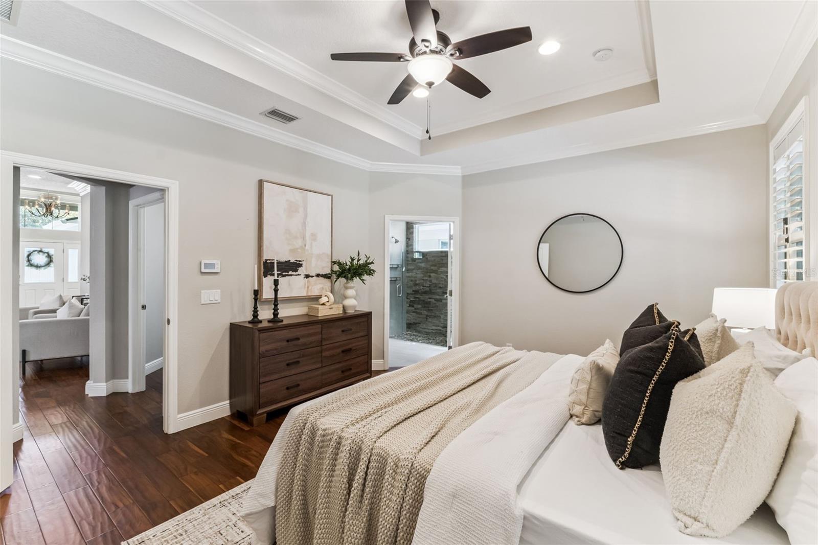 Take a look at this exquisite 3 bed, 2.5 bath, one story POOL home with NEW ROOF - 2025, LeafFilter Gutter Guard - 2025 AND PAID OFF SOLAR PANELS (whole house). NO HOA. Resting on half an acre! Engineered hardwood flooring in primary bedroom, living, dining & kitchen. Primary closet features custom-built ELFI titanium closets with added wood finishes. Modern, classic style chandeliers in foyer & dining room, interior lighting package, double crown molding and the spacious floorplan offers a stylish yet comfortable place for any type of setting. The blackout Plantation shutters, ceiling fans, and solar panels add to the efficiency of the house. Beautiful backyard with covered rain gutters, wood fence, extended deck and two side lighted entrances offers the perfect setting for relaxation! Designated half bath in patio area! Smoke detectors in every room, carbon monoxide detector and dual key pad alarm, key chain and smart device controlled system. This gorgeous home also offers a custom designed SALTWATER POOL and Jacuzzi, light package, waterfalls, sitting areas and heating package! Location is convenient to highways, airport, shopping & downtown! Come see this incredible home TODAY!