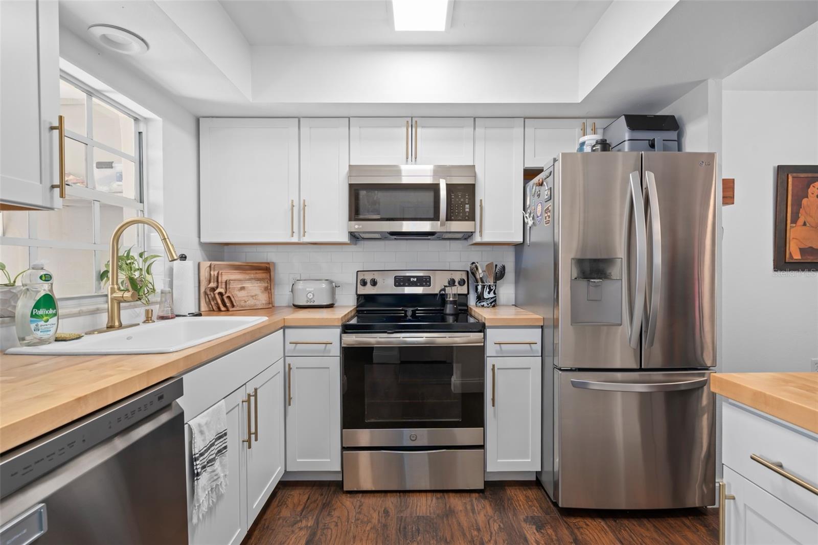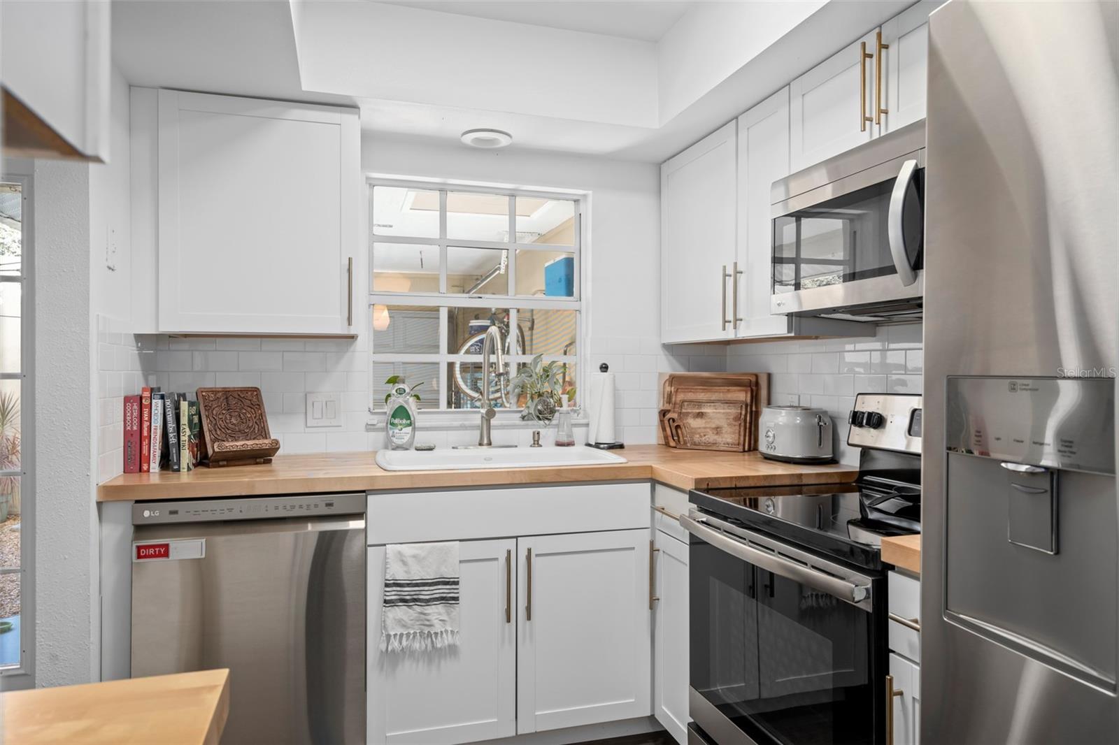 You must see this absolutely charming and beautifully updated, 2 bedroom, 2.5 bathroom townhome in one of Orlando's most-desired zip codes! As you drive up, you'll instantly notice the BRAND NEW EXTERIOR PAINT (2025) and the NEW ROOF (July 2021)! As you walk inside, you'll see the fresh interior paint, and the new WOOD LAMINATE FLOORING covering the entire first floor, and the updated light fixtures. The guest bath has been updated with a new BUTCHER BLOCK vanity, faucet, and oversized sink. The kitchen has been entirely updated with BUTCHER BLOCK COUNTERS, a new stainless steal dishwasher, microwave, and refrigerator. And you'll just love the tastefully installed corner coffee station! Just outside the kitchen you'll see the NEW ELECTRIC PANEL and the new ECOBEE WIFI THERMOSTAT. In the storage room on the first floor is the BRAND NEW WATER HEATER (2025). As you head upstairs, you'll see the BRAND NEW LAMINATE FLOORING covers the stairs and second floor as well. The spacious primary bedroom has a large double closet, a floating nightstand, and large windows that cover everything in natural light. The updated primary bath has a BRAND NEW SHOWER, CUSTOM TILE, and a beautiful RIVER PEBBLE SHOWER FLOOR. Bedroom 2 also has its own MATCHING PRIVATE BATH and a walk-in closet. As you head out the BRAND NEW BACK DOOR, you'll see the laundry room to the left with BRAND NEW SAMSUNG WASHER/DRYER SET that convey. The 1-car garage has a BRAND NEW OPENER and also holds a delightful stone courtyard that is open to the sky for enjoying the stars and warm summer nights. This unit comes with TWO TERMITE BONDS, NEW ADDED INSULATTION for keeping the energy costs super low, NEW GUTTERS, and RING DOORBELL that conveys. Come see this rare, beautiful townhome and make it yours today!
