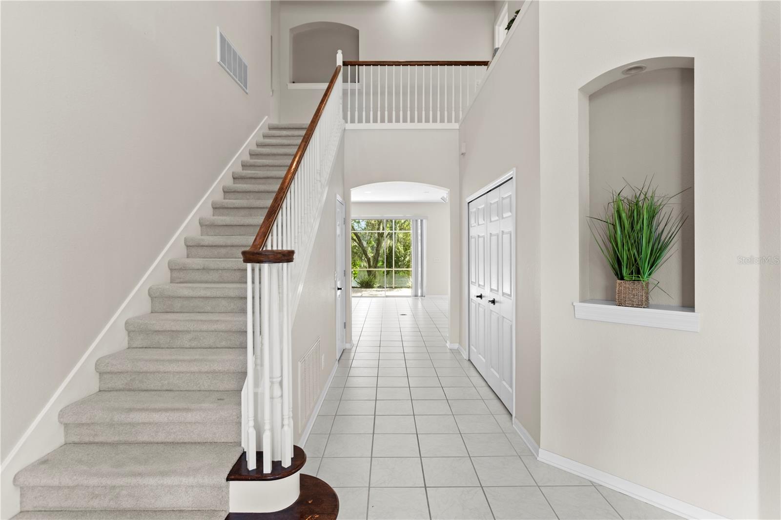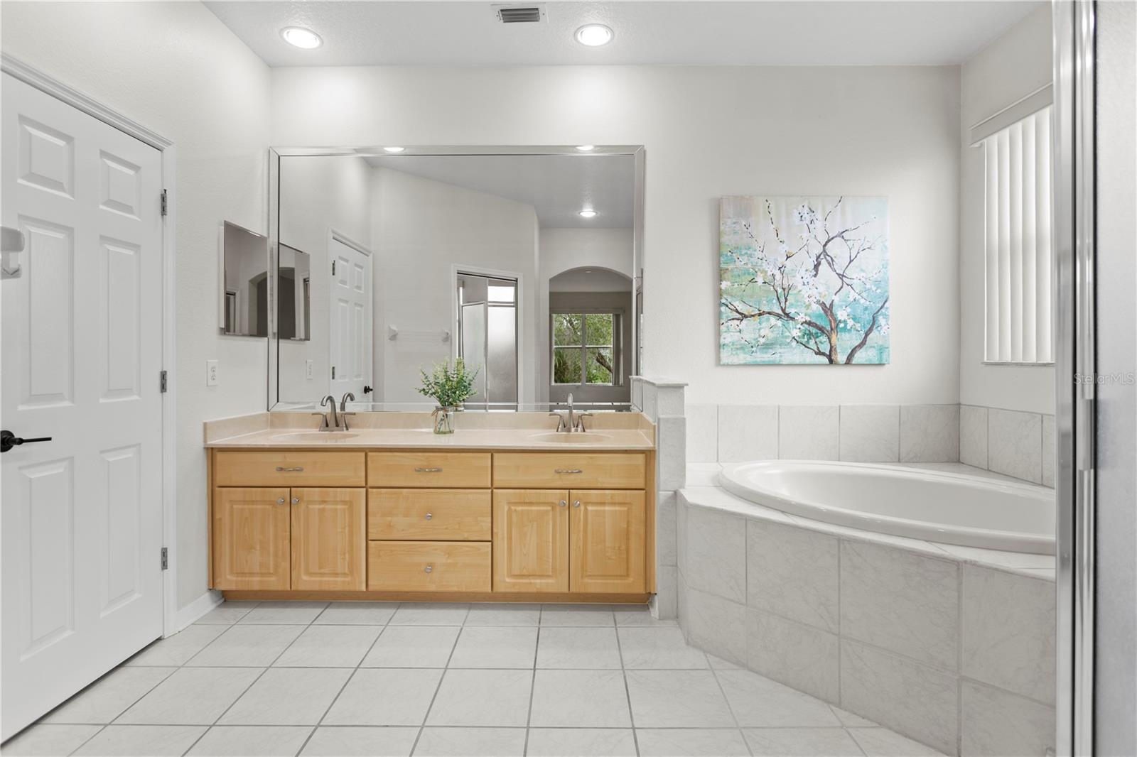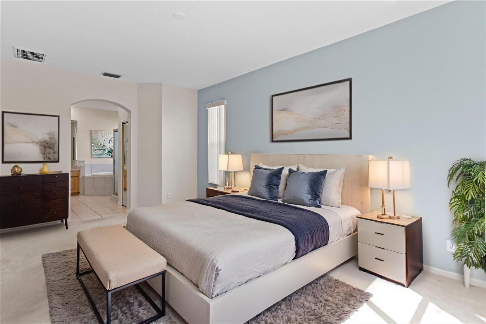 Executive home in Quail’s Landing of Arbor Greene, perfectly positioned on a waterfront lot and offering one of the best values in the community. At over 3,300 sq. ft., this is the best-priced large home in Arbor Greene. A rare find with dual master suites—one upstairs and one downstairs—this layout is ideal for multi-generational living or flexible use. The home features 4 bedrooms, 4 bathrooms, A downstairs flex room/office, an upstairs office, and a 3-car garage. Spacious living areas filled with natural light and water views. The dramatic two-story foyer opens to a formal living room with plantation shutters and custom millwork, leading into the open-concept main living space with 12-foot sliding doors to the screened lanai. Outside, enjoy an outdoor kitchen, spa, and pavered patio overlooking the water. The kitchen is finished with solid marble countertops, a center island, double ovens, 5-burner gas range, and stainless-steel appliances. Off the kitchen, you will find a large flex room that can be used as a downstairs office, play room, or private reading room. The first-floor primary suite has floor-to-ceiling windows with water views, a soaking tub, walk-in shower, dual vanities, and large closet. Upstairs includes a second master suite with vaulted ceiling and a spacious ensuite, plus two additional bedrooms and a home office with built-in desk and cabinetry. Roof replaced in 2016. Arbor Greene offers 24/7 manned gates, clubhouse with event space, fitness center, Olympic-sized and resort-style pools, tennis courts, pickleball courts, playgrounds, and miles of walking paths and nature trails. Conveniently located minutes from I-75 with quick access to shopping, restaurants, hospitals, USF, and downtown Tampa. This home offers both space and value in one of New Tampa’s most established communities.